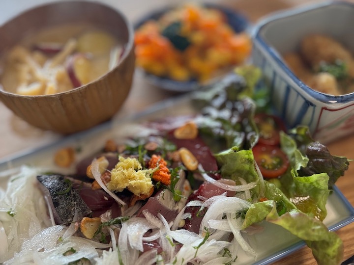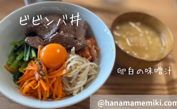ビビンバ丼(主菜)卵白のお味噌汁(汁物)