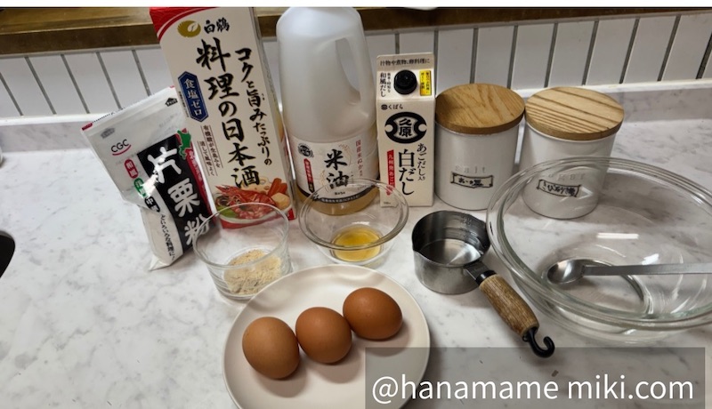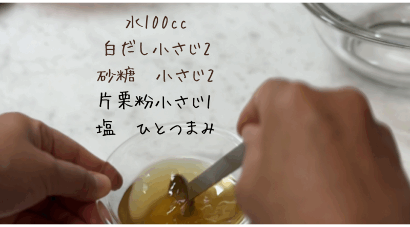 片栗粉 小さじ1 ※白だし小さじ2に入れて混ぜておくとダマにならない
