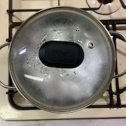 ❹一旦火をとめ、蓋をしたまま10分放置する。10分たったらとりきもだけお皿に取り出しておく。